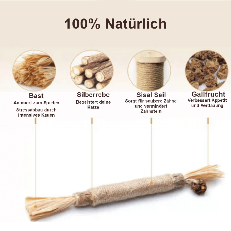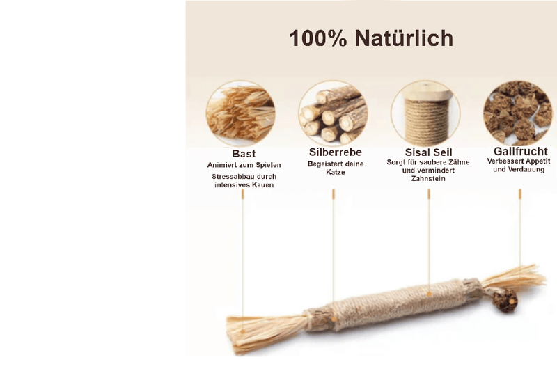 Durch hochwertige Naturmaterialien ist es ein langlebiges Spielzeug für Deine Katze.
